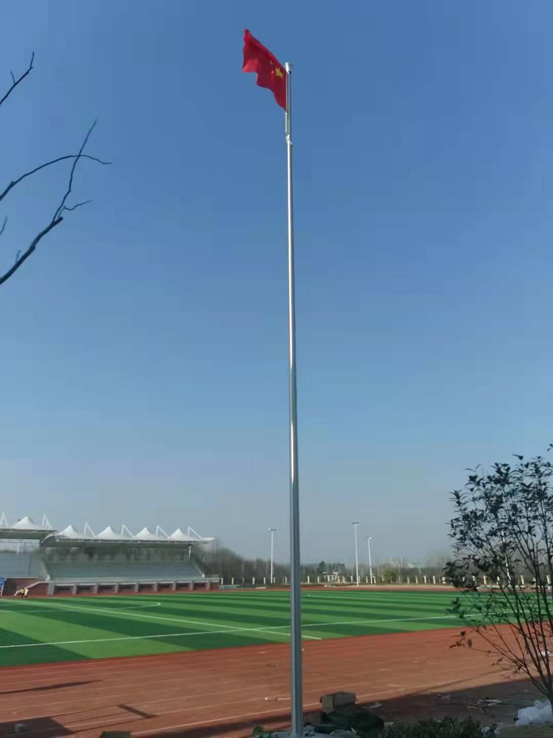 六安市金安職業學校手動錐形旗桿,此次左尚金屬安徽耀龍為六安市金安職業學校生產的旗桿為優質不銹鋼制造,旗桿錐形挺拔高大,是錐形外置式的旗桿,內藏不銹鋼繩,旗桿外無旗繩,免去旗桿與旗繩碰撞產生刮痕,從而可能導致桿體易生銹。